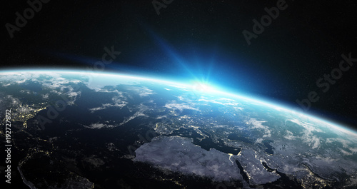 Sticker : View of blue planet earth in space 3d rendering elements of this image furnished by nasa