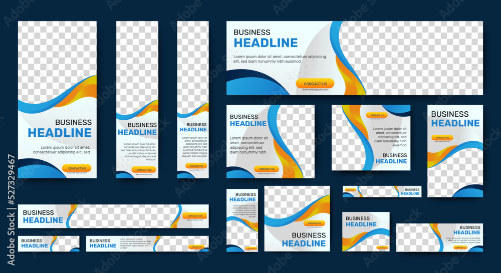 Web banner template design set layout with photo and text space - white and blue - business advertisinSticker