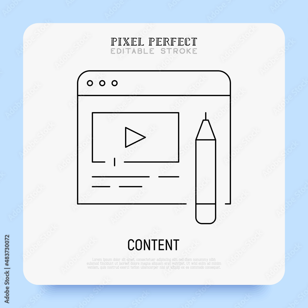 The watermark will not be included on Sticker.: Web site content creation thin line icon - pixel perfect, editable stroke - vector illustration -