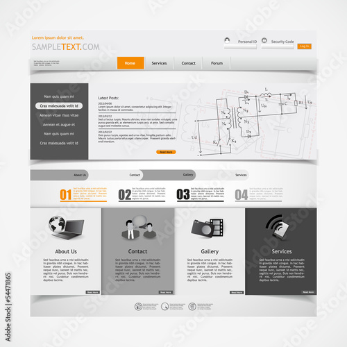The watermark will not be included on Sticker.: Website design template with electronics schematic illsutration