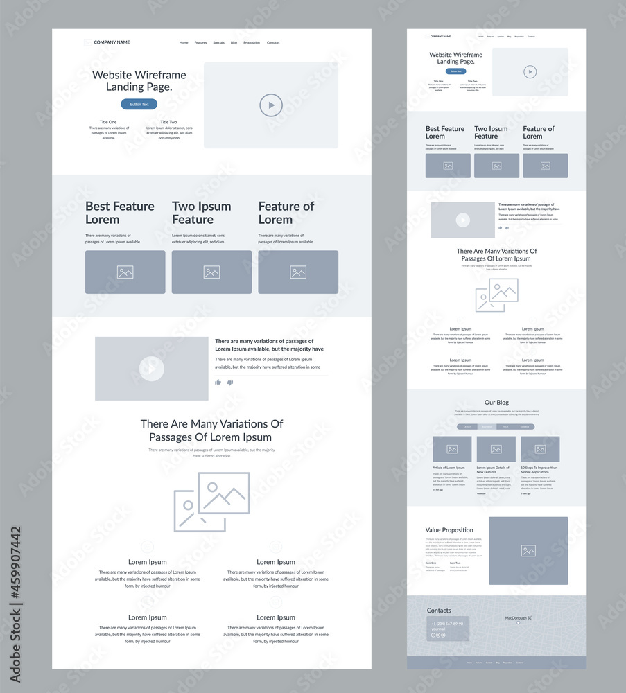 Website design template - modern wireframe landing page for development - flat one page site - ui ux elSticker