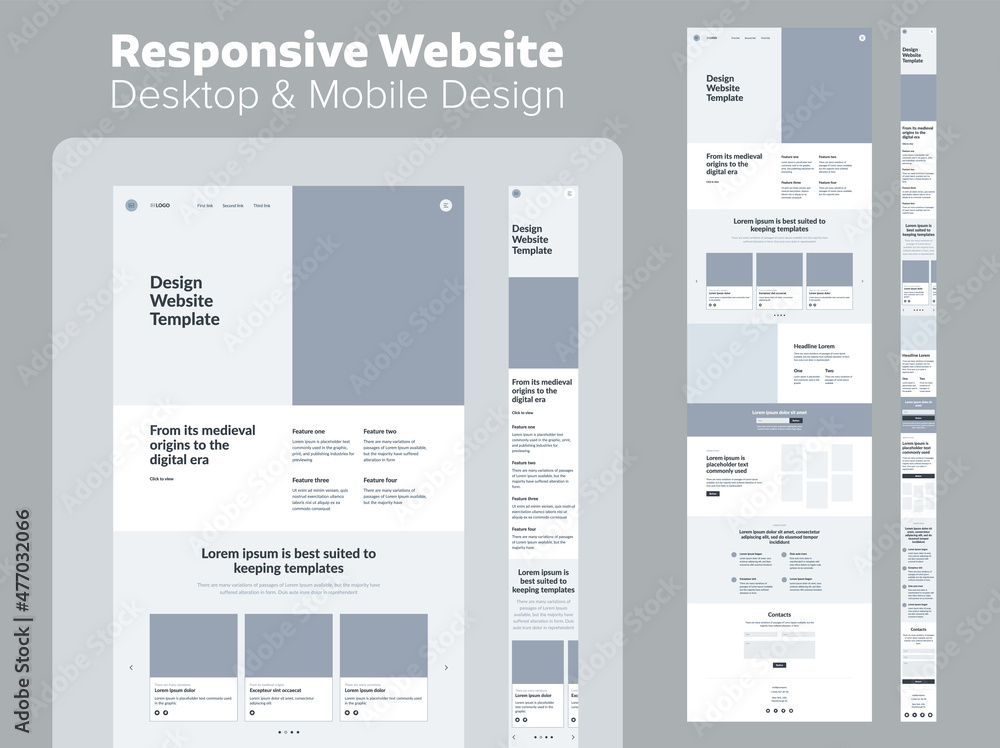 The watermark will not be included on Sticker.: Website design - responsive desktop and mobile wireframe - landing page template -