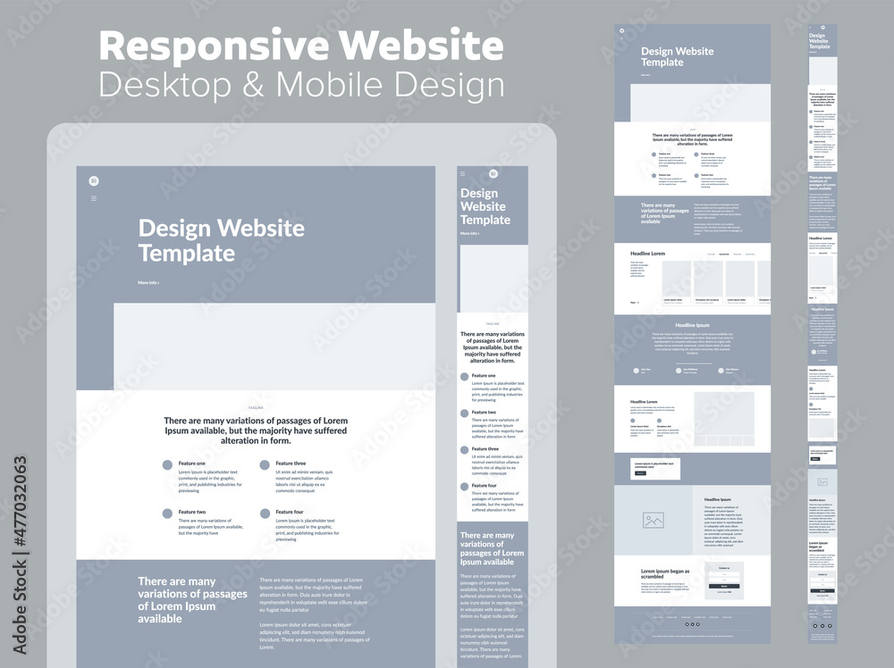Website design - responsive desktop and mobile wireframe - landing page template - Sticker