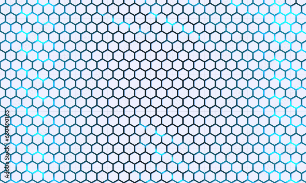 The watermark will not be included on Sticker.: White 3d hexagonal technology vector abstract background - blue bright energy flashes under hexagon i