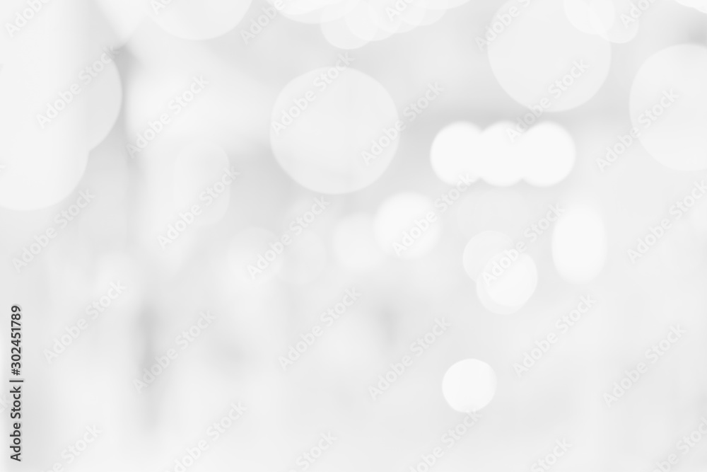 The watermark will not be included on Sticker.: White blurred abstract bokeh background with circles background template for a holiday card with bri