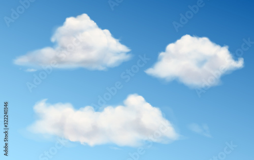 The watermark will not be included on Sticker.: White clouds in blue sky - vector realistic fluffy different shapes clouds in clean heaven in summer