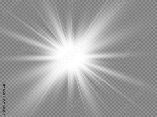 Sticker white glowing light explodes on a transparent background. sparkling magical dust particles. bright s