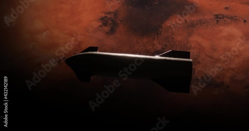 Sticker : Wide spaceship rocket flying above mars surface, space colonization concept