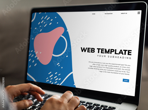 The watermark will not be included on Sticker.: Working on a web template on the laptop