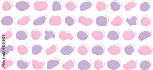 The watermark will not be included on Wall mural.: かわいい抽象的な流体シェイプの楕円フレーム ベクター ピンク 紫 set of cute abstract shapes - vector loose frame - abstract wave on bac