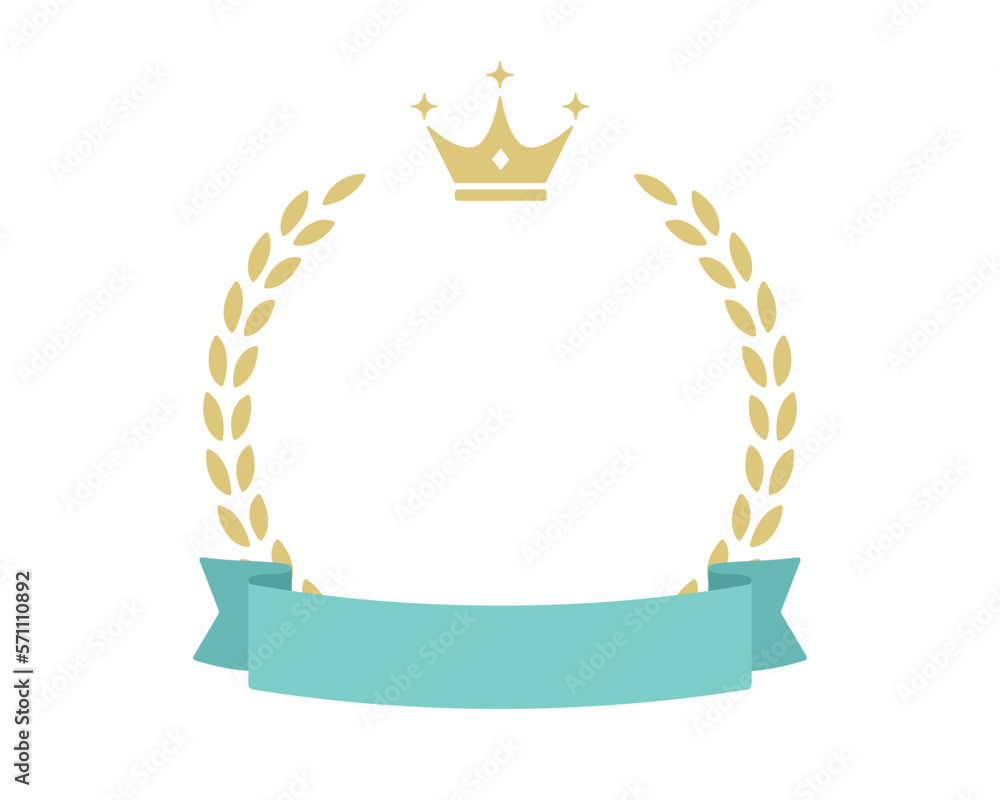 シンプルなランキングフレーム 王冠 表彰 リボン 枠 月桂樹 飾り 装飾 冠 大賞 1位 金 金賞Wall mural