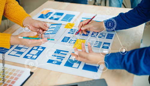 Wall mural .ux graphic designer planning application process development prototype wireframe for web smart pho