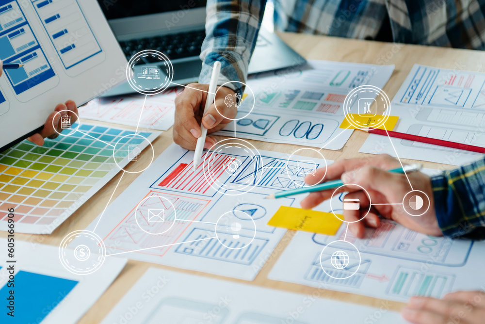 Wall mural .ux graphic designer planning application process development prototype wireframe for web smart pho