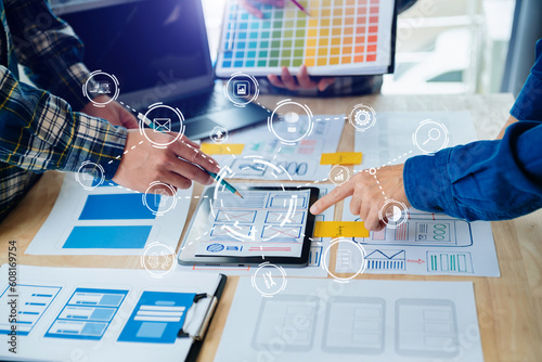Wall mural .ux graphic designer planning application process development prototype wireframe for web smart pho