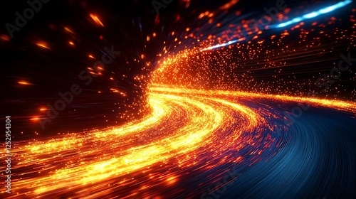 Wall mural ' fast light path on dark tunnel with glowing particles ideal for futuristic tech. - Wall murals Wall mural ' fast light path on dark tunnel with glowing particles ideal for futuristic tech. - Wall murals