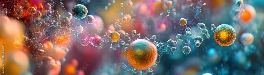 The watermark will not be included on Wall mural.: ** abstract molecular structure with vibrant colors and bokeh effect in a science and technology con