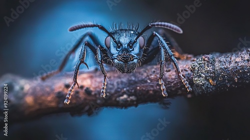 Wall mural a close-up of a spider on a tree branch with droplets of water on its face and legs