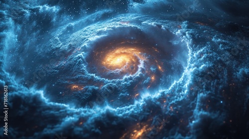 The watermark will not be included on Wall mural.: A close up of a spiral shaped object in the middle of a dark blue sky with stars in the middle of th
