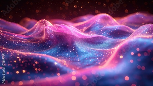 Wall mural a computer generated image of a blue and pink wave with stars on the top of the wave and on the bott - Wall murals Wall mural a computer generated image of a blue and pink wave with stars on the top of the wave and on the bott - Wall murals
