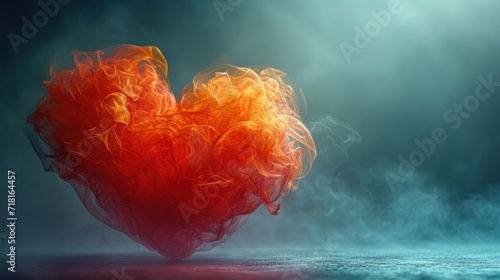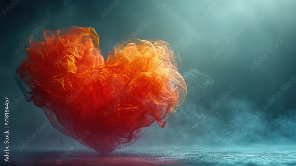 The watermark will not be included on Wall mural.: A red and orange heart shaped object on a dark background with smoke coming out of the top of the he