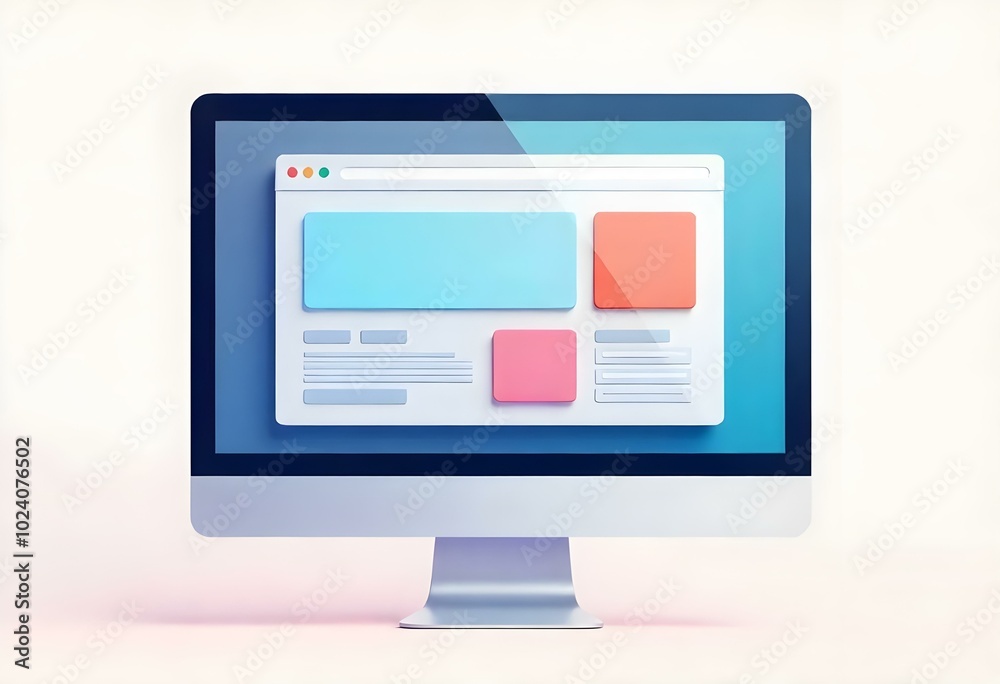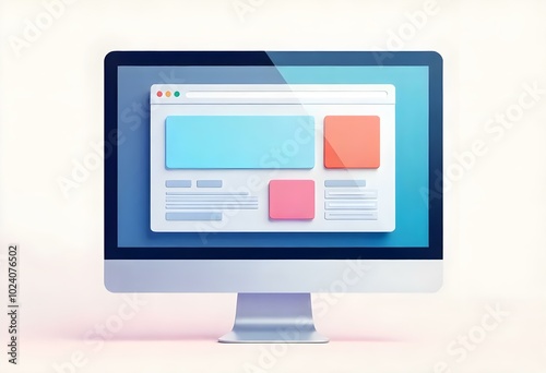 Wall mural : "a semi-flat 3d vector design of a browser window, showing an abstract webpage or application interf