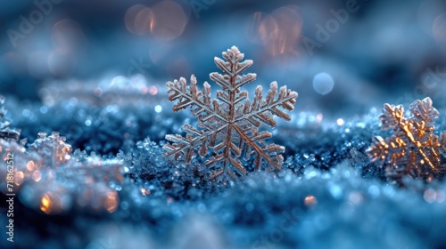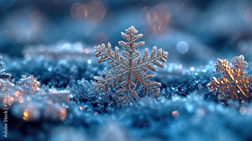 Wall mural a snowflake sitting on top of a pile of snow next to another snowflake on top of a pile of snow cove - Wall murals Wall mural a snowflake sitting on top of a pile of snow next to another snowflake on top of a pile of snow cove - Wall murals