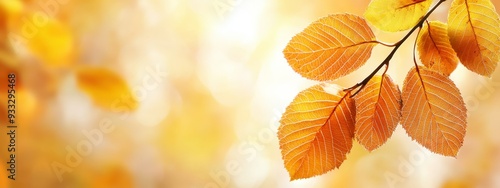 The watermark will not be included on Wall mural.: A tree branch with leaves in sharp focus in the foreground and a softly blurred backdrop of more lea