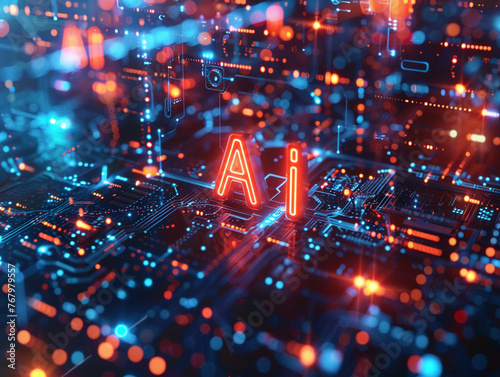 Wall mural : "ai" in an ultra high-definition intergalactic theme with the letters illuminated by neon circuitry