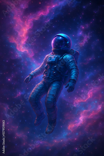 The watermark will not be included on Wall mural.: "astronaut floating in space with colorful stars" [ outer space]