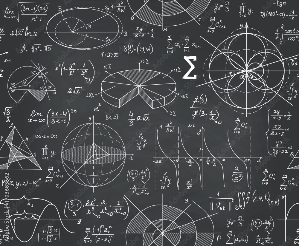 Wall mural "back to school" vector seamless pattern with handwritten math and physics formulas and calculations - Wall murals Wall mural "back to school" vector seamless pattern with handwritten math and physics formulas and calculations - Wall murals