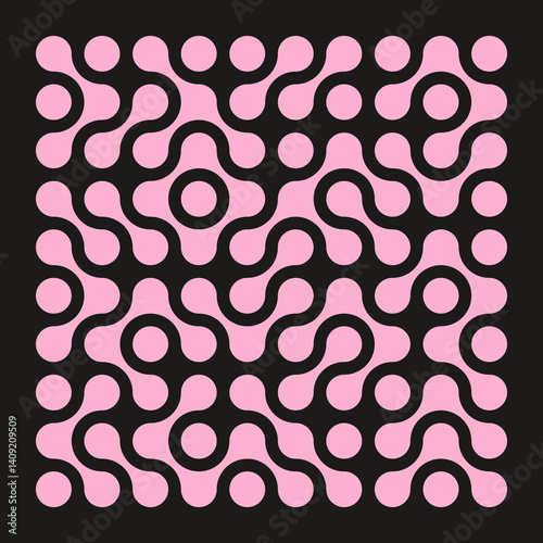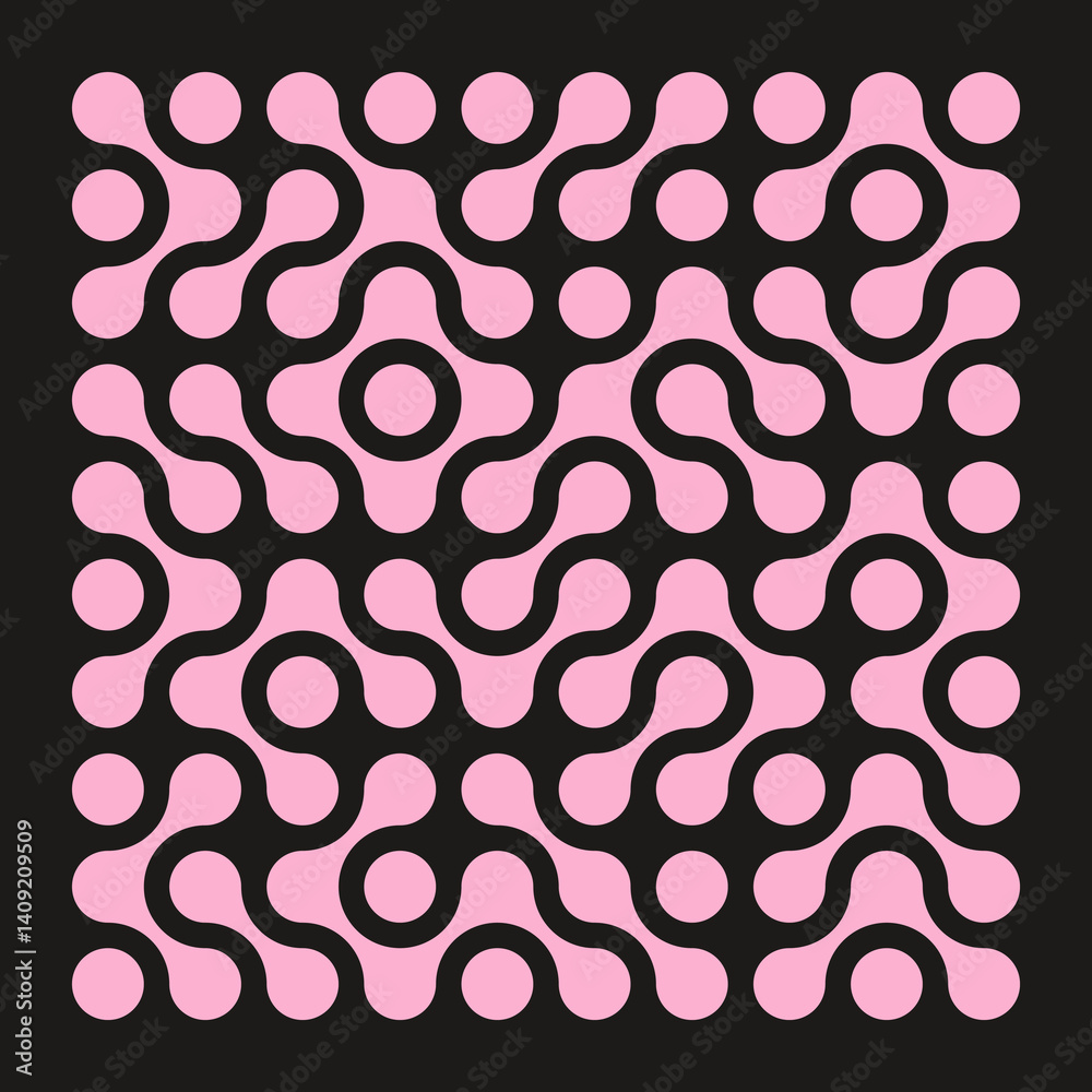 Wall mural : Background with black liquid connected circle dots - metaballs pattern on white - abstract geometric s