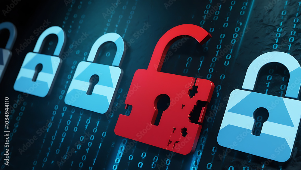Wall mural : Binary code lock, combination lock code - digital padlock for computing system on a dark blue backgro