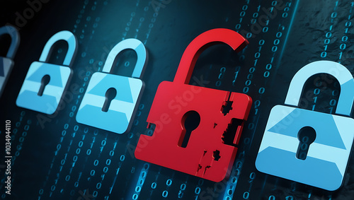 Wall mural binary code lock, combination lock code. digital padlock for computing system on a dark blue backgro - Wall murals Wall mural binary code lock, combination lock code. digital padlock for computing system on a dark blue backgro - Wall murals