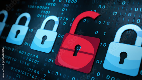 Wall mural binary code lock, combination lock code. digital padlock for computing system on a dark blue backgro