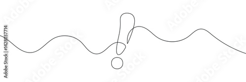 Wall mural continuous linear drawing of exclamation mark. single-line drawing of an exclamation mark. exclamati