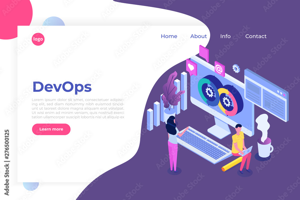 Wall mural : Devops concept - application development, building - api prototyping, programming and testing - vector