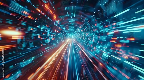 Wall mural : Digital data flow on road in concept of program coding with graphic creating vision of fast speed tr