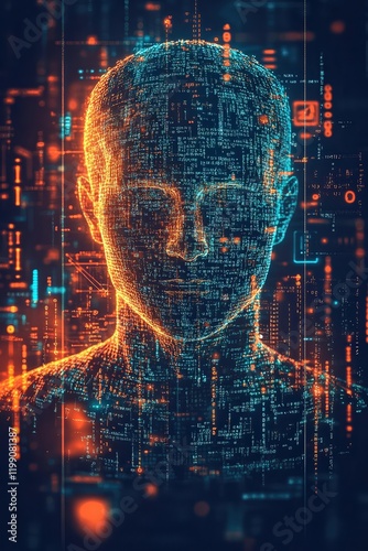 Wall mural digital identity profile illustration featuring a human silhouette made of binary code, surrounded b - Wall murals Wall mural digital identity profile illustration featuring a human silhouette made of binary code, surrounded b - Wall murals