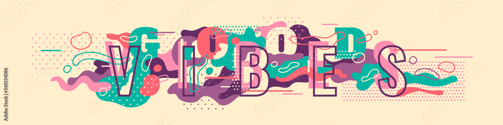 The watermark will not be included on Wall mural.: "good vibes" abstract banner design with typography and colorful fluid shapes - vector illustration -