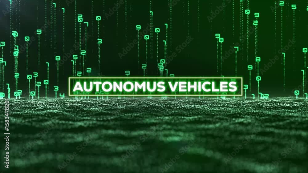 The watermark will not be included on Wall mural.: Matrix binary code and autonomous vehicles word