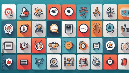 "outline web icons set: a collection of thin line icons for search engine optimization"Wall mural