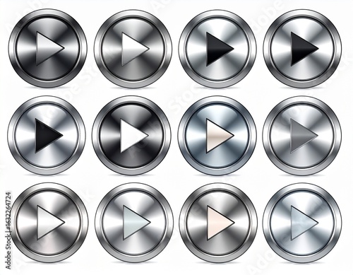 Wall mural "set of twelve metallic media control buttons in a 3x4 grid, featuring play, pause, and skip icons w - Wall murals Wall mural "set of twelve metallic media control buttons in a 3x4 grid, featuring play, pause, and skip icons w - Wall murals