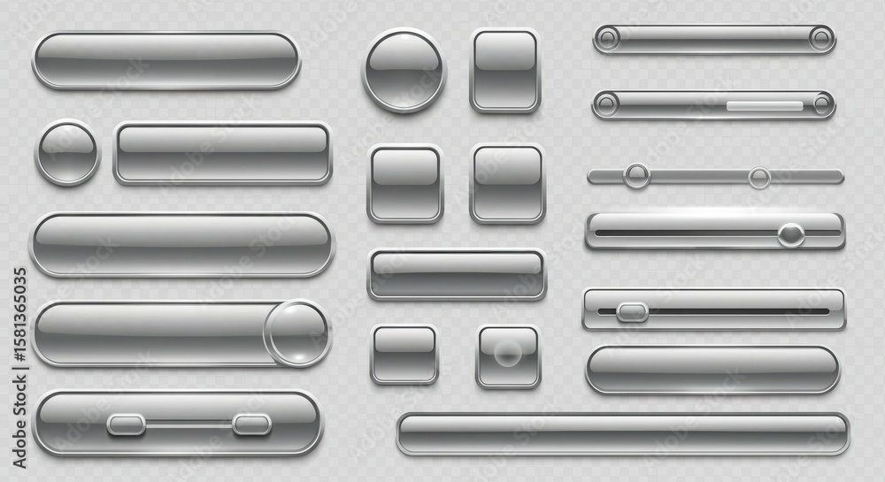 Wall mural "set of vector metallic user interface buttons and sliders, glossy chrome and steel textures, futuri - Wall murals Wall mural "set of vector metallic user interface buttons and sliders, glossy chrome and steel textures, futuri - Wall murals
