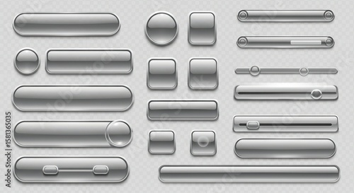 The watermark will not be included on Wall mural.: "set of vector metallic user interface buttons and sliders, glossy chrome and steel textures, futuri