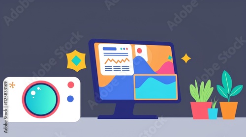 Wall mural : "technology dashboard with digital charts and graphical interface