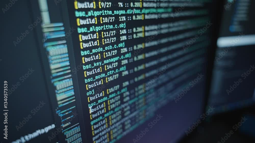 The watermark will not be included on Wall mural.: The algorithm of the computer program on the monitor - execution of the program code for the mining p