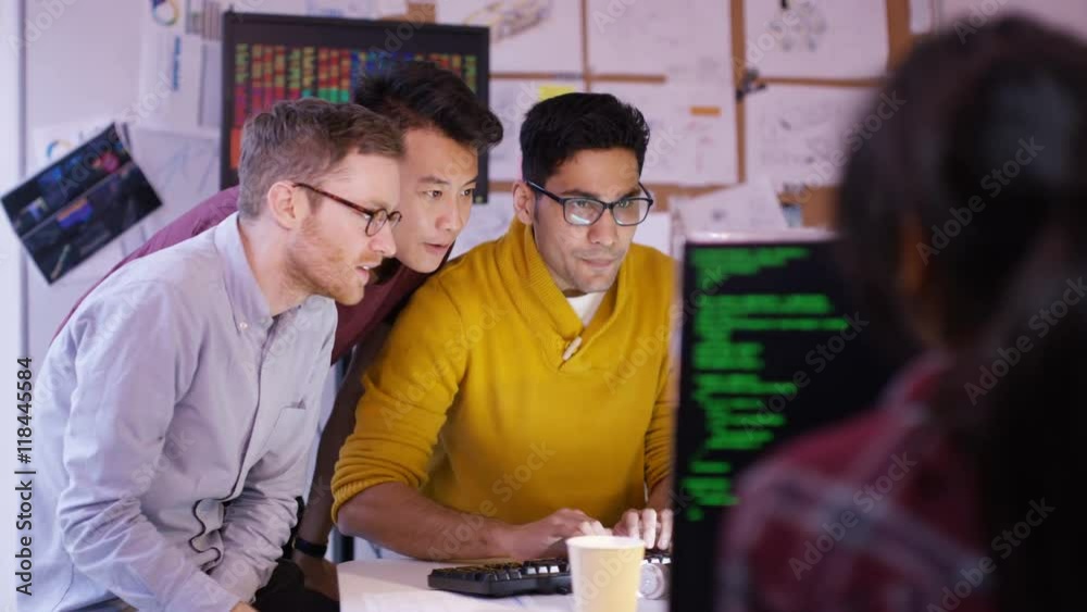The watermark will not be included on Wall mural.: Young computer experts working in office with lots of computers