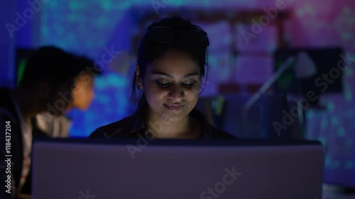Wall mural : Young computer hacker trying to gain access to a computer system