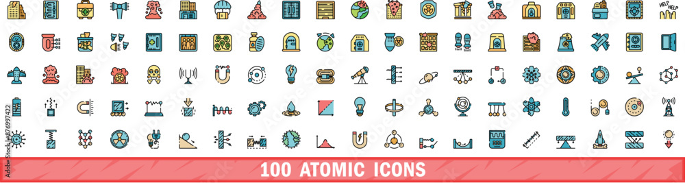 100 atomic icons set - color line set of atomic vector icons thin line color flat on whiteWall mural