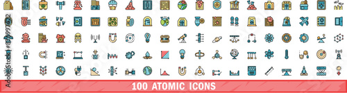 Wall mural 100 atomic icons set. color line set of atomic vector icons thin line color flat on white